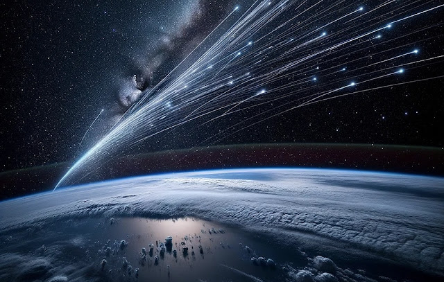 | Șir de sateliți (nu reprezintă sateliți Starlink) - Imagine decorativă realizată de HD Satelit Romania |